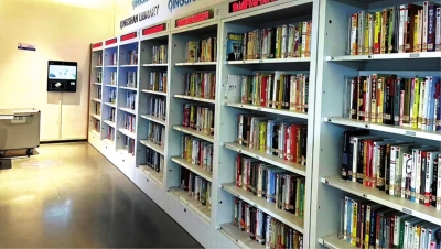 夜间开放的青山区图书馆一楼。