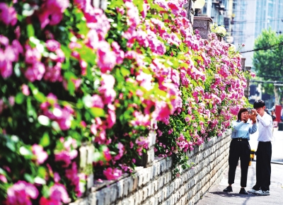 连日来,武汉满城月季盛开,无论是行驶在路上,还是漫步在公园,市民随时都有可能与月季邂逅,收获一份惊喜。