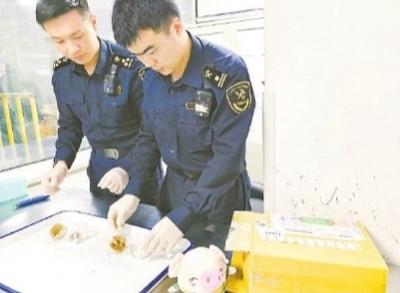 “入境邮件中发现活体动物!”在沪太路上的上海国际邮件申报受理网点,刚刚打开的申报名为玩具的纸箱内有一只粉色小猪玩具,还有2只塑料透明盒子。掀起盒子的纸盖,里面赫然有不少蠕动的白色虫子,疑似活体鼠妇(俗称西瓜虫)。