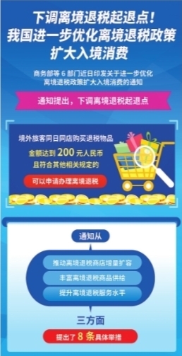通知从推动离境退税商店增量扩容、丰富离境退税商品供给、提升离境退税服务水平三方面提出了8条具体举措。