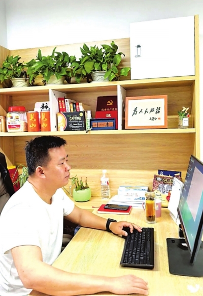 社区书记陈诚正在工作中。