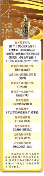 新华社青岛4月27日电 第二十届中国电影华表奖27日在山东青岛揭晓,《第二十条》等10部影片获优秀故事片奖。