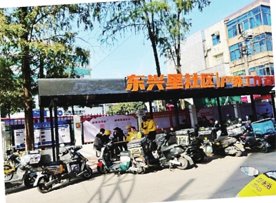 户外工作者驿站划设外卖小哥停车专区。