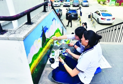 靓平台·绘家园:武汉市钢都中学美术专业师生与居民共同完成墙面彩绘,通过学生们的专业手绘把艺术色彩与文明理念融入社区文化,将原本老旧的墙面“重塑新颜”。