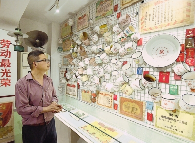 与其他博物馆不同,江城印象的展览“接地气”到极致。展厅里,《民众乐园百年回顾展》门票;《武汉教育真品展》收集了武汉大学20世纪50年代的通行证、学生证明等;还有许多人儿时的记忆“奖杯”——搪瓷缸。