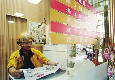 在社区暖心驿会吧,外卖员、快递员免费享受饮水、充电、阅读报刊和积分兑换等服务。