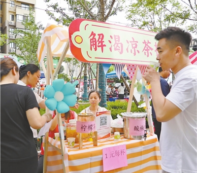 居民参加邻里节集市活动。