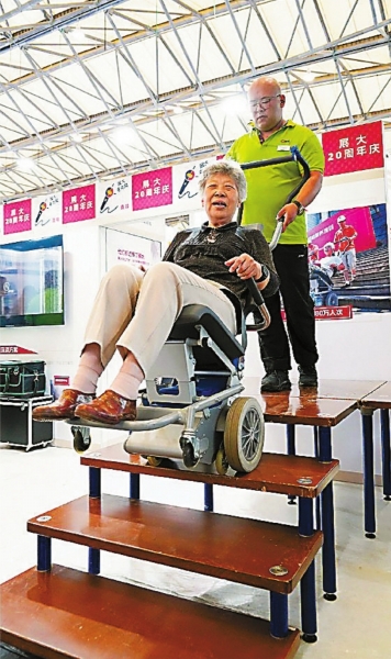 市民周女士特地带着父母前来参观展会,她说:“我妈妈腿脚不便,我想在现场看看有没有合适的轮椅,现在科技发达了,各种各样的产品很丰富,刚看到有日本进口的远近视眼镜也非常不错。”