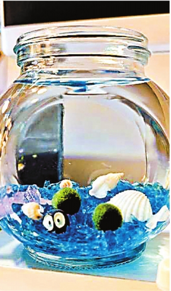 “这种海藻球养起来非常简单,只要避免阳光直射,放在室内散光处就好,然后每周换一次自来水,换水前,水要晾24小时,使水温控制在25℃以下,换水时要轻轻揉搓球体,帮它保持圆润的形状。”周楠说。