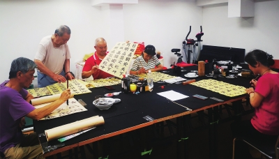 居民韩丽芬:我来利济社区居住快四年了,玩柔力球、写书法,在这里大家都玩得蛮高兴。自从搬过来后,和爱人在社区组队做书画,从一开始的几个人参与,到现在骨干成员13人。每年暑假为辖区孩子们义务教毛笔字和中国画,让中华文化代代延续。