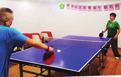社区活动室的乒乓球桌前,每天都有文体爱好者相约来几局。