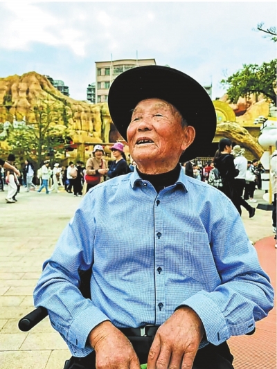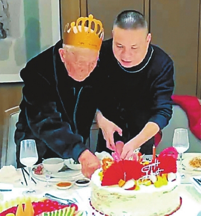 干全洪44岁时收养了干则亿,如今干则亿带着年过百岁的养父游历山河。