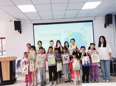 社区小朋友参加“保护生态环境”主题的手工布袋活动。