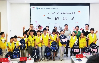 此外,团区委专门还增设了特色“艺术熏陶”课程,策划组织了“童眼看产业”实践体验活动,丰富孩子们的暑期体验。湖北大学新能源与电气工程学院不仅提供了教学场地,还组建了一支由大学生组成的“小锂鱼”志愿服务队,全程负责日常管理、教学辅导和安全保障。