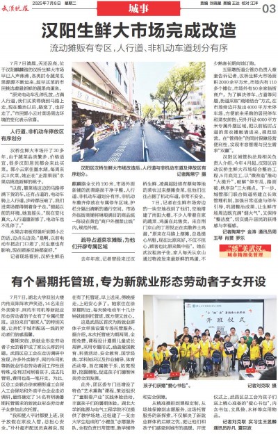 这是武昌区首次为新就业群体子女单独设置专场托管服务。据介绍,本次托管班为期两周,全部免费,课程设计遵循儿童成长规律,采用专题形式,涵盖爱国教育、科普活动、安全教育、国学经典、学科知识以及作业辅导、体育活动等,旨在寓教于乐,拓宽视野,挖掘潜能,促进孩子们德智体美劳全面发展。
