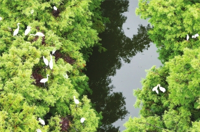 6月28日,雨后的“水上森林”,池杉繁茂,群鸟啁啾,鱼儿欢腾,生机盎然。湖北省交通规划设计院股份有限公司副总工程师、双柳长江大桥项目设计负责人彭晓彬,再次来到位于武汉新洲的涨渡湖湿地自然保护区,“看到鸟儿们在这里安宁地栖息,感觉很欣慰!”