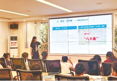 围绕防溺水“六不准”原则,志愿者展开教学:不私自下水游泳;不擅自与他人结伴游泳;无家长/成人带领,不到水边玩耍;不到无安全设施、无救援人员的水域游泳;不熟悉水性,不盲目下水施救;不在上下学途中下河、塘、沟、渠等危险水域玩耍。