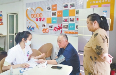 “凤凰友邻”议事共享厅里,积玉桥街社区卫生服务中心医师为居民义诊。