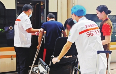 拨通“962120”热线后,接线员的专业应答让徐红松了口气。“他们详细询问了老伴的病情、行动能力以及转运需求,很快给出肯定答复。”更让徐红感动的是,转运团队得知患者行动不便,主动将担架车推到了协和医院骨科七楼病房。转运过程中,工作人员全程监测患者生命体征。到达汉口站后,他们不仅用轮椅将余先生护送至1号车厢,还帮忙搬运了所有行李。
