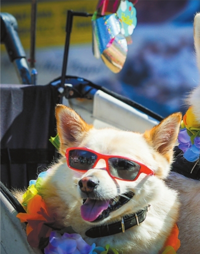 盛装打扮的宠物狗。