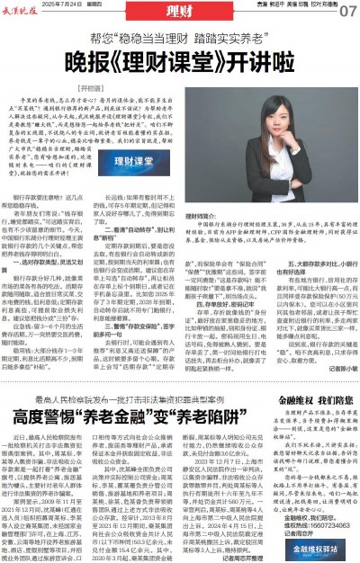 晚报《理财课堂》开讲啦