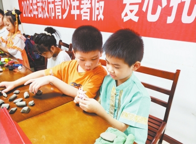 栩栩如生的“神兽”泥塑、五彩斑斓的“九尾狐”……8月5日,在蔡甸区蔡甸街道五层社区暑期公益托管班现场,30名孩子兴奋地展示着他们的《山海经》主题创作。