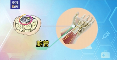 在人体手腕部掌侧有一个骨性纤维管道,称为腕管。长时间重复手腕动作等各种原因挤占了腕管空间,就会引起腕管内压力增高,正中神经受到压迫,引起疼痛等一系列症状。