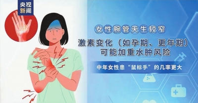 女性腕管天生较窄,激素变化(如孕期、更年期)可能加重水肿风险,因此中年女性患“鼠标手”的概率更大。