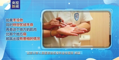 熊建表示,要想自查肌肉是否萎缩,可以进行按压,如果肌肉饱满,说明正常;如果按压后,肌肉比较扁,且特定区域手麻,表明有萎缩的情况。