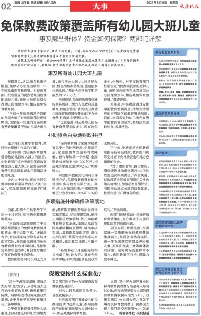 “各地将在8月底前完成相关准备工作,让大班儿童在今年秋季学期开学时就能享受到政策红利。”刘玉光说。