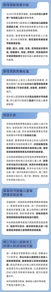 根据意见,从2025年秋季学期起,免除公办幼儿园学前一年在园儿童保育教育费。对在教育部门批准设立的民办幼儿园就读的适龄儿童,参照当地同类型公办幼儿园免除水平,相应减免保育教育费。