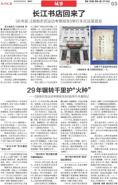武汉晚报讯(记者林敏 杨菁 通讯员兰子君)8月7日上午,曾在大革命时期点燃“革命火种”的长江书店,整旧如旧后,以一个“红色文化综合体”面目重新亮相。
