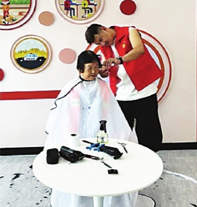 驿站内还提供免费理发服务和清凉饮品。刚理完发的环卫工王阿姨高兴地说:“这免费理发太及时了,剪完头发清爽多了。”