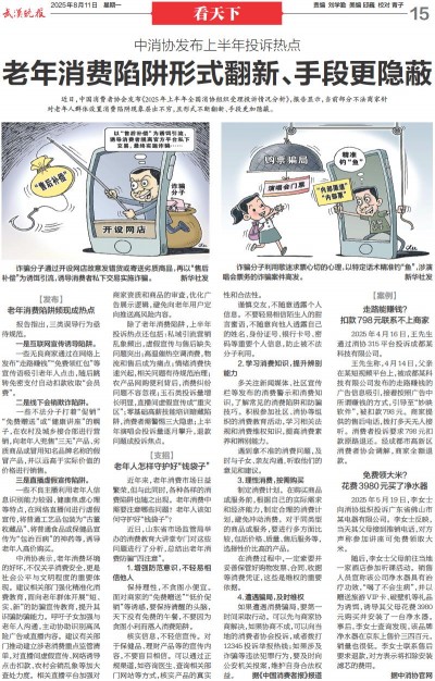 近日,中国消费者协会发布《2025年上半年全国消协组织受理投诉情况分析》,报告显示,当前部分不法商家针对老年人群体设置消费陷阱现象层出不穷,且形式不断翻新、手段更加隐蔽。