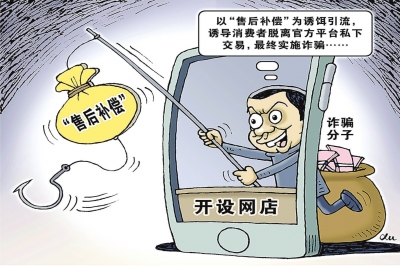 诈骗分子通过开设网店故意发错货或寄送劣质商品,再以“售后补偿”为诱饵引流,诱导消费者私下交易实施诈骗。
