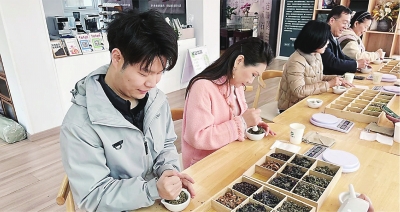 市民参观膏药铺湾中医馆并体验中药文化。