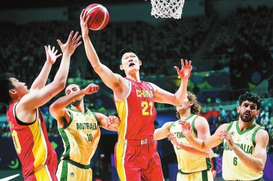 换边后不久,赵睿在一次防守后摔倒,被暂时换下场。下半场打了3分钟后,澳大利亚队反超了比分,中国队叫了暂停,赵睿也再度出场。他的三次罚球命中,加上程帅澎和雷蒙的远投得分,帮助中国队再次领先。两队比赛节奏很快。中国队顶住了压力,三节过后,中国队以71比68领先。