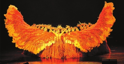 武汉市第一聋哑学校的演员们在18日的汇演现场表演群舞《凤凰》。