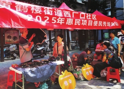 线上社区群预约,线下广场便民服务,每月定期为社区居民提供修伞、修鞋、服装缝补等。