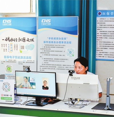 工作人员在开展“手机视频办医保”业务。