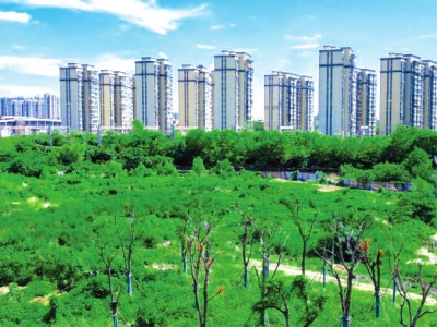 欢乐大道南明渠东岸绿化景观。