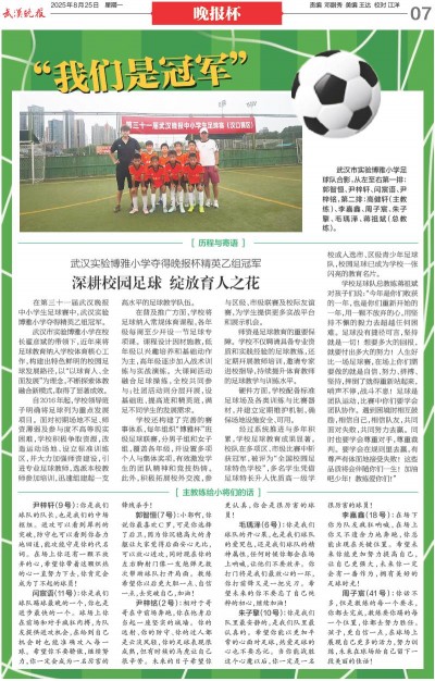 在第三十一届武汉晚报中小学生足球赛中,武汉实验博雅小学夺得精英乙组冠军。