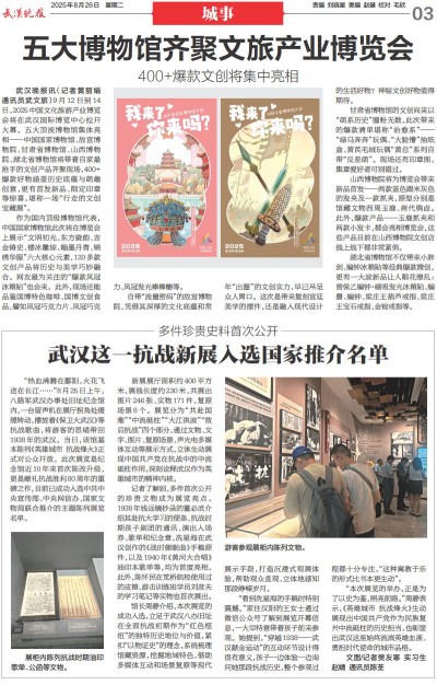 武汉晚报讯(记者黄丽娟 通讯员武文旅)9月12日到14日,2025中国文化旅游产业博览会将在武汉国际博览中心拉开大幕。五大顶流博物馆集体亮相——中国国家博物馆、故宫博物院、甘肃省博物馆、山西博物院、湖北省博物馆将带着自家最抢手的文创产品齐聚现场,400+爆款好物涵盖历史底蕴与萌趣创意,更有首发新品、限定印章等惊喜,堪称一场“行走的文创宝藏展”。