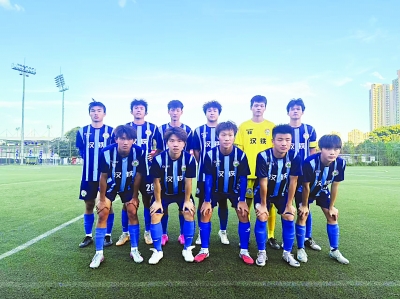 汉铁高中足球队合影,前排从左到右:黄新凯、杨雨舟、杨定名、陈攀宇、曾梓晗,后排从左到右:雷瑜儿、林哲宇、罗泽、秦子捷、谭傲、吴逸凡。