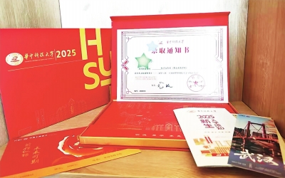 小宇收到来自华中科技大学的录取通知书。
