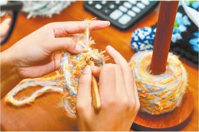 在浙江桐乡,一家开了20多年的老牌服装公司最近开始进攻新赛道——针织文创。货架上的毛线娃娃有的穿着巴掌大的针织毛衣,有的套着针织蓬蓬裙,格外惹眼。五颜六色的毛线在“00后”设计师手中,变成了一个个精美的小物件。