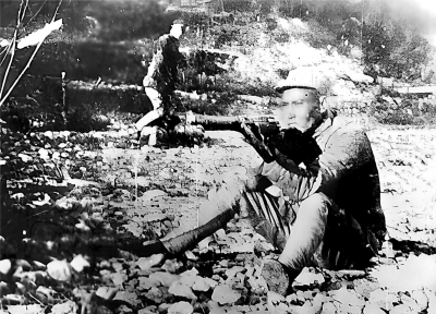 1943年,新四军第五师军政整训,时任13旅旅长的周志坚作射击示范。