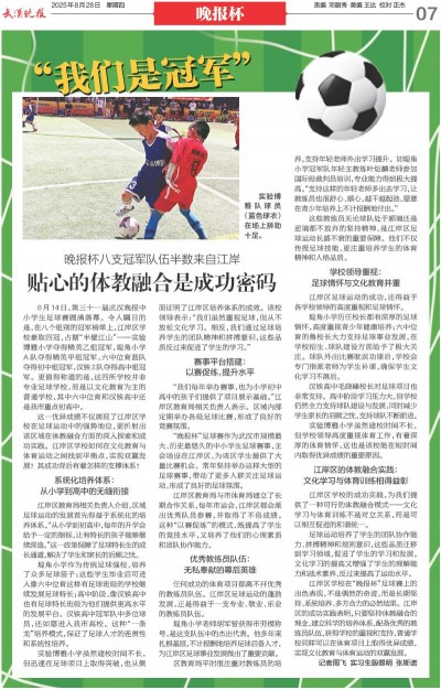 实验博雅小学虽然建校时间不长,但迅速在足球项目上取得突破,也从侧面证明了江岸区培养体系的成效。该校领导表示:“我们虽然重视足球,但从不放松文化学习。相反,我们通过足球培养学生的团队精神和拼搏意识,这些品质反过来促进了学生的学习。”