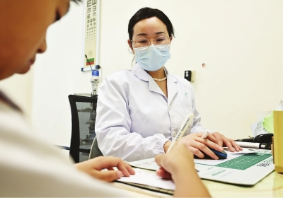 刘淑芳接诊患儿,请孩子现场演示读写习惯(资料图)。