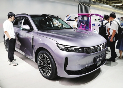 8月25日,人们在岚图汽车武汉工厂参观岚图汽车。